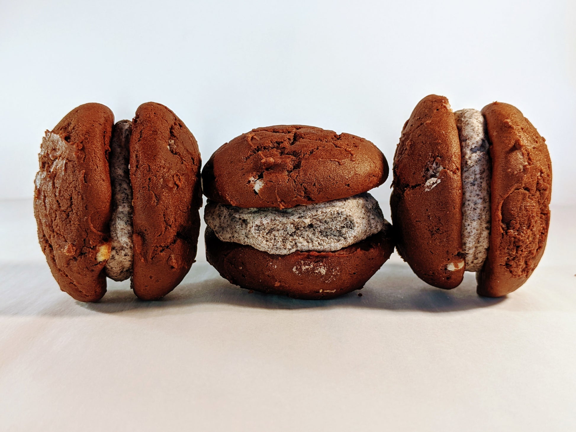 Step into the underworld of sweetness with our Whoopie Capone—a Cookies & Cream Whoopie Pie that’s pulling off the ultimate flavor heist. Two pillowy-soft chocolate cakes smuggle in a smooth, creamy filling packed with crunchy cookie bits that’ll make your taste buds sing like a speakeasy band. Baked fresh to order, each bite is a decadent blend of classic flavors with a twist that’s as smooth as a con man’s charm. Get ready to join the cream conspiracy because this is one treat you won't want to keep under wraps!