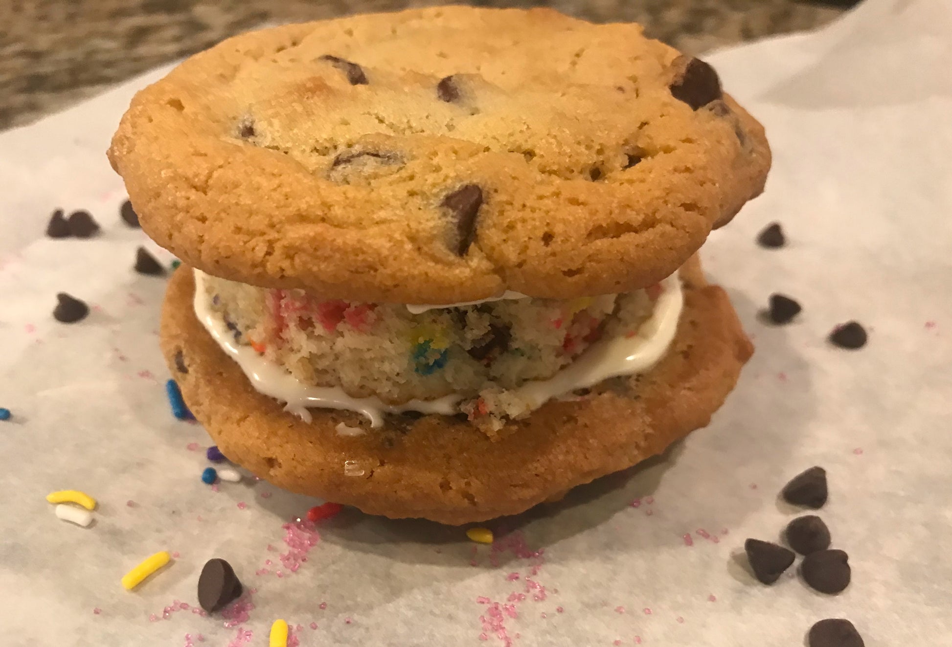 Step into the world of the Cakewalker, where dessert boundaries are crossed and flavor alliances are forged. Two of our finest chocolate chip cookies surround a delicious piece of vanilla cake in a sweet deal that’s as smooth as a speakeasy operator. Baked fresh to order in small batches, this treat is crafted from scratch using only top-quality ingredients—no preservatives, no shortcuts, just pure, unfiltered indulgence. One bite of this layered delight, and you'll be in on the tastiest secret in town.